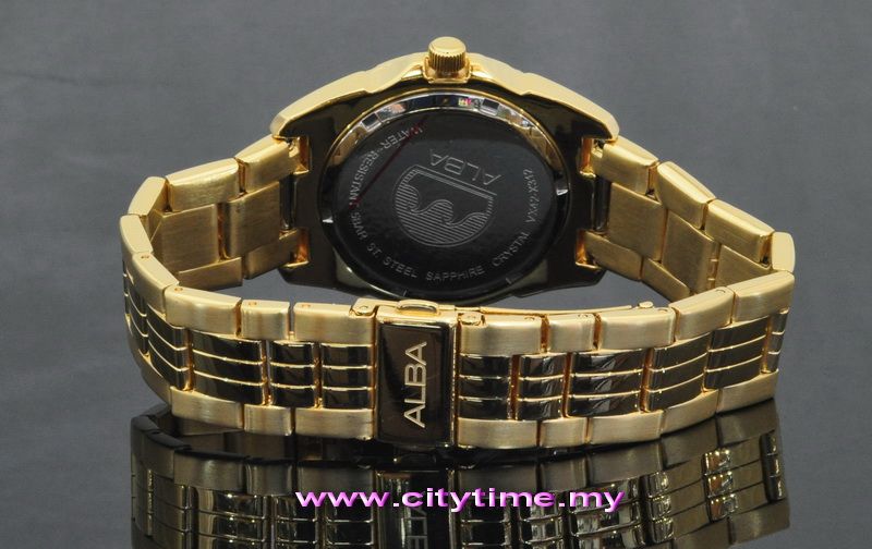ALBA Men Sapphire Glass Gold Stainless Steel Date Watch VX42-X312 G (Gold dial)