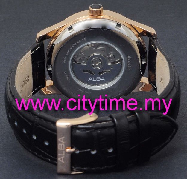 ALBA Men Automatic Open Heart Dial Leather Strap Watch NH38-X001BRGL