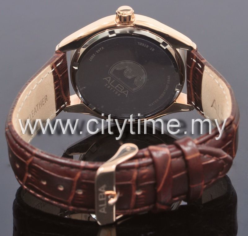ALBA Men Day Date Stainless Steel Leather Strap Watch VJ43-X007RGL