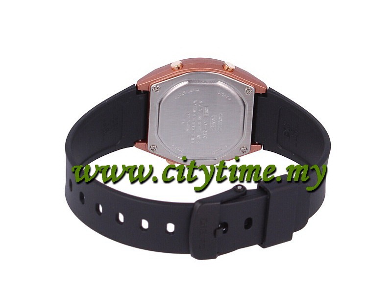 CASIO YOUTH Ladies Rose Gold Black Strap Digital Watch LW-204-1AVDF