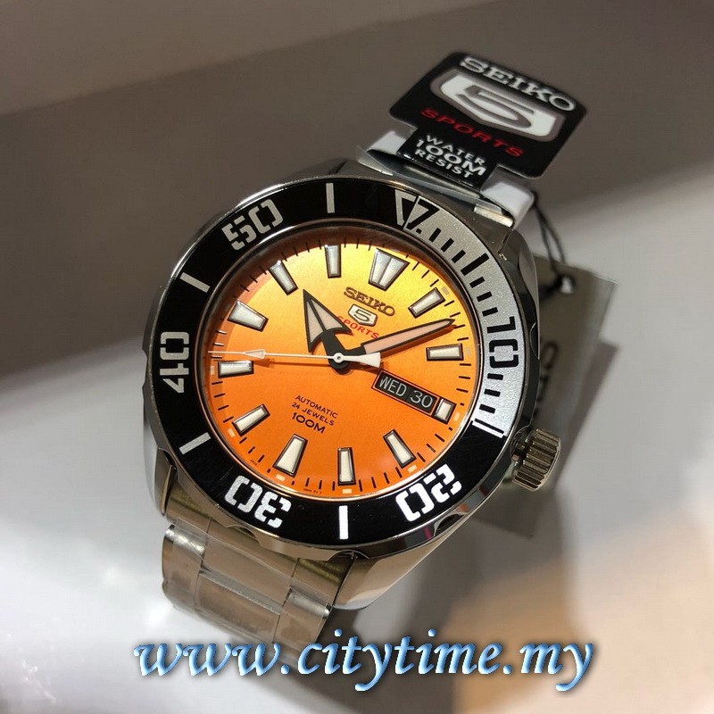 SEIKO 5 Sports Men Automatic Orange Dial Stainless Steel Watch SRPC55K1