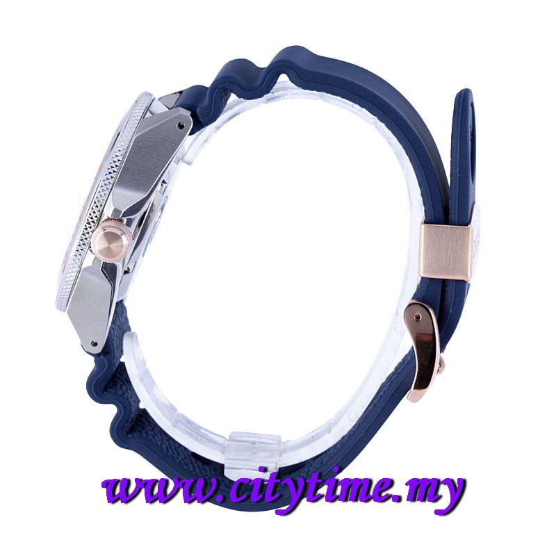 -Blue silicone strap with rose gold stainless steel buckle