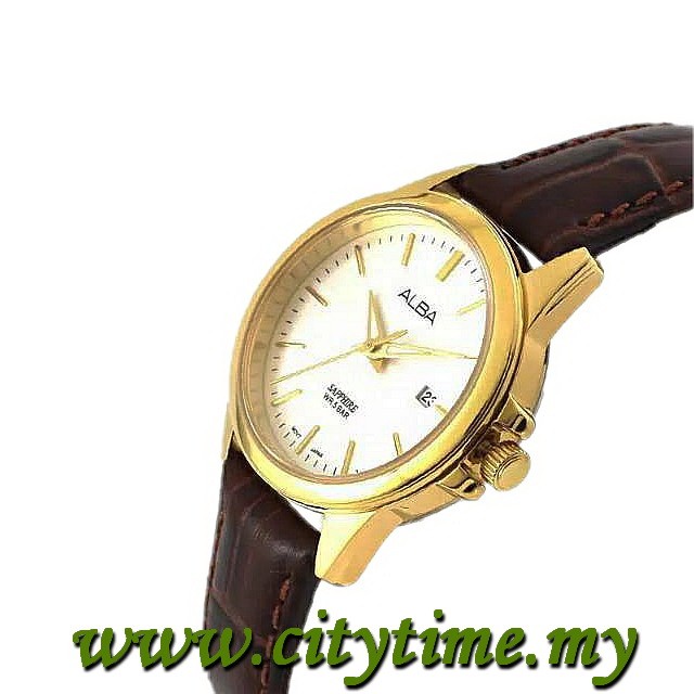 ALBA Ladies PRESTIGE Sapphire Glass Brown Leather Date Watch VJ22-X293SGL