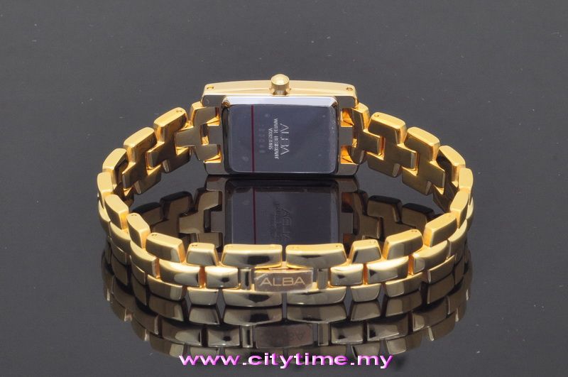 ALBA Ladies Gold Stainless Steel Square Date Watch VX82-X465SGL (SILVER DIAL)