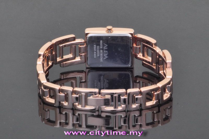 ALBA Ladies Rose Gold Stainless Steel Square Watch VX82-X463 ROS (SILVER TONE DIAL)